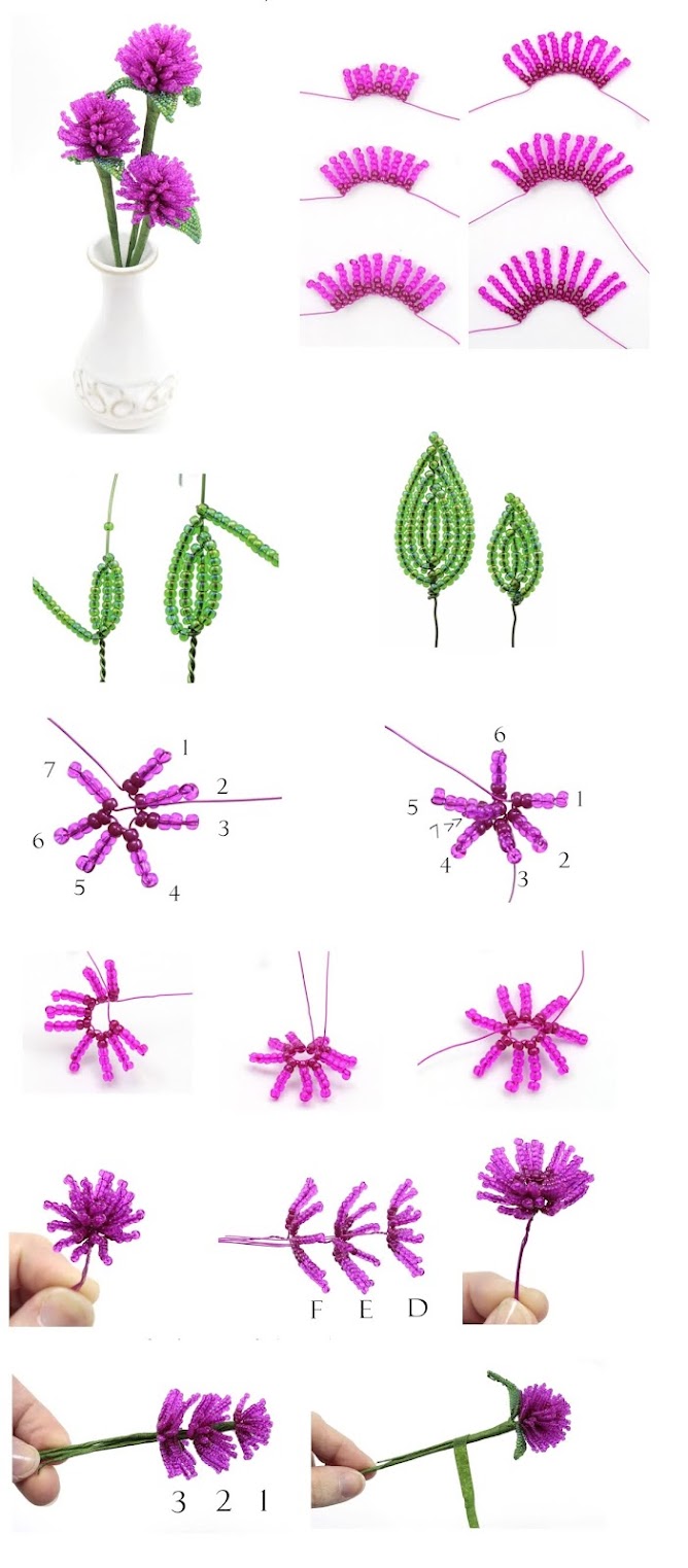 Para este modelo, se uso cobre de calibre 26 o 24 (0,4 - 0,5 mm) alambre central y aproximadamente 5 gramos de cuentas de tamaño 11 / 0.1 .Ensarta todas las cuentas en el alambre. Deje una cola de alambre de 5 cm (2 pulgadas) antes de hacer un 1 bucle de cuentas